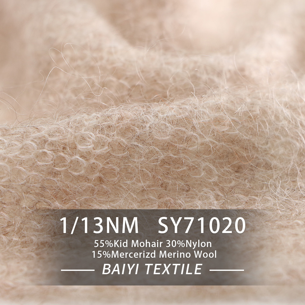Eigenschaft: Wärme, Weichheit, anti--pilling Zusammensetzung: Merinowolle 55%Kid Mohair30%Nylon 15%Mercerizd